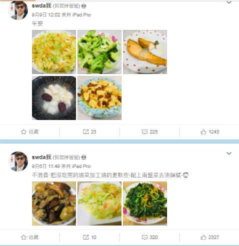 翻看郭爸的社交账号,他的每一条动态几乎都是如此,分享自己的日常饭菜,然后配一句简短的感想,表达吃饭的喜悦。