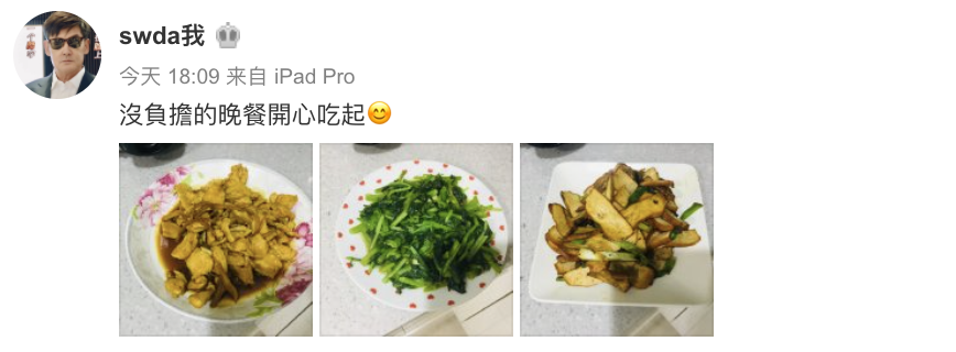关于郭碧婷产女时间,郭爸爸似乎早有暗示。郭碧婷产女当天,郭爸爸下昼还在家吃晚餐呢,一个人炒了三个菜,发文:没有负担的晚餐开心吃起!言语轻松,网友留言:“没负担,是指已产吗?”似乎在那时候已经得知女儿生产的消息了。无论如何,恭喜郭爸成绩为外公,这段时间郭碧婷生产,郭爸负责做饭,功不成没!