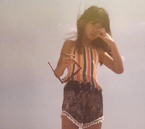 单人照里,Grace一手拿着墨镜,一手揉眼睛,长发被风吹得有些凌乱,五官长得很清秀,原来的小方脸也变成了小v脸,她再也不是当初那个被人形容为“丑萌”的小可爱,颜值成功逆袭,成为了长腿美少女。