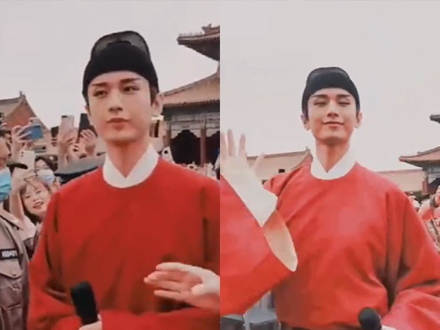 这张路透照则是《梦醒长安》剧组举办见面会的时候,成毅被拍下的生图,可以看到他身穿红色的戏服,整小我看上去意气风发。