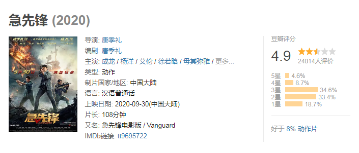 今年的国庆节其实注定是一个不服凡的节日,是疫情发生以来,第一次的长假。其实很多应该在今年大年上映的电影都被推迟了,其中就有《急先锋》、《我和我的家乡》、《姜子牙》等电影。但是从现在的情况来看,这些电影上映以后的口碑好像并不是很好。《急先锋》是