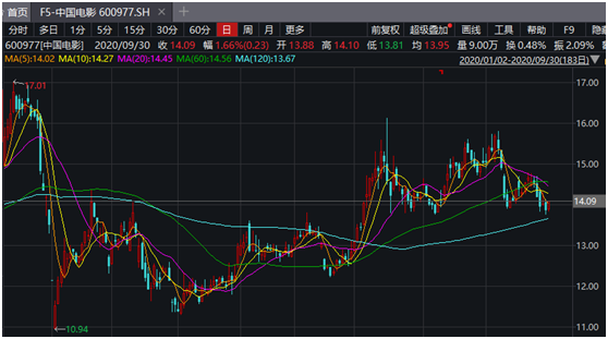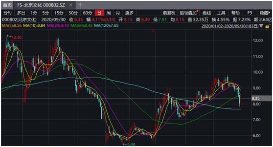 《我和我的家乡》的首要出品方和发行方均是号称 “爆款电影收割机”的北京文化,此前《战狼2》《流浪地球》《我不是药神》等爆款电影均由其出品。但2017受到疫情影响,全国影院关门,年中才开始复工复产,北京文化股价自然也是精神萎顿,年初至今跌了10.12%。半年报显示,2020年上半年,北京文化实现营业收入为564.85万元,归属于上市公司股东的净利润为吃亏6429.83万元。值得注意的是,在节前最后一个买卖日,北京文化股价上涨了4.11%。