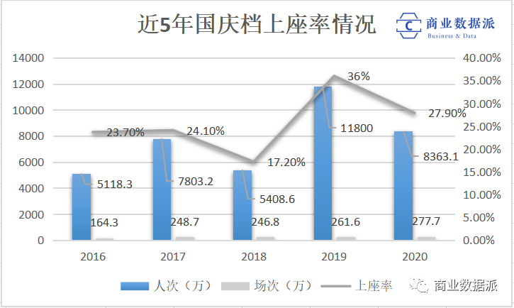 从其他数据信息来看,2017国庆档无论是走进电影的观影人次还是上座率,与前三年相比也都有明显的上升。