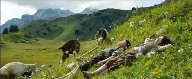 阿尔卑斯山美景,小女孩和爷爷的温馨故事。