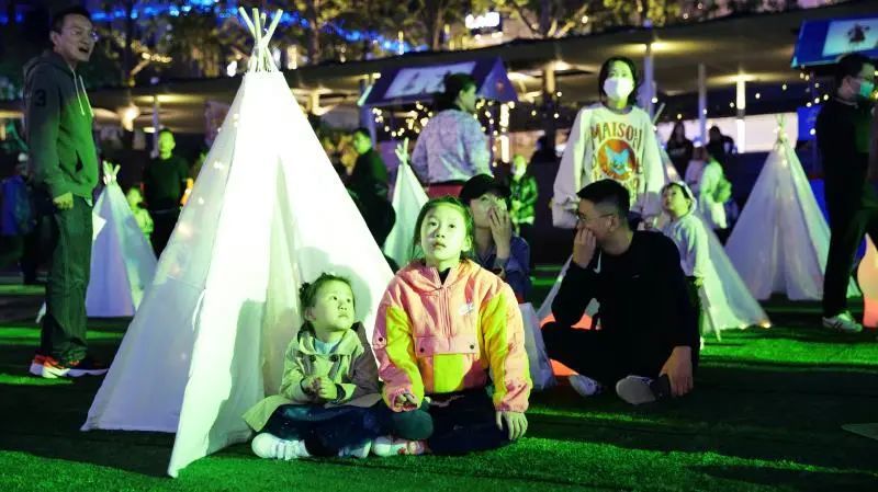 大人们看电影,小朋友们则开心地围着帐篷玩。市民吴先生说:“我家住在附近,孩子经常和小朋友来玩,但从来没体验过看露天电影。放映现场跟游乐土一样,我们小时候看露天电影的感觉还是有的,大家图个热闹乐呵。”
