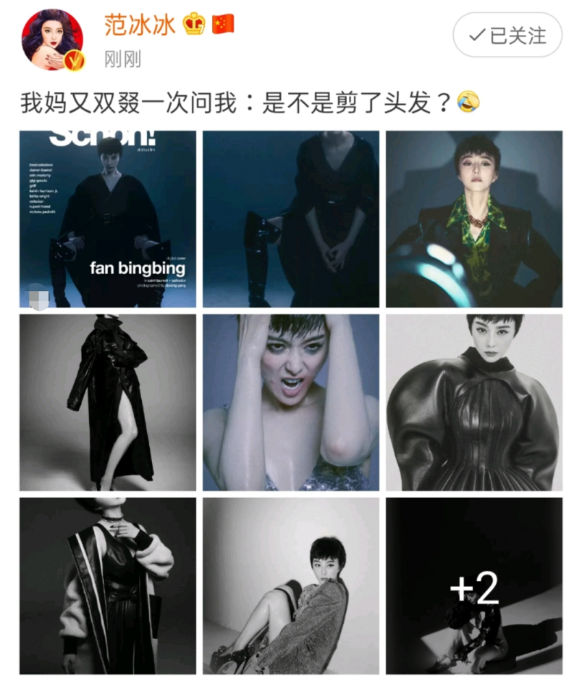 10月8日,她在国内的小我社交平台账号上又发布了一则动态,晒出自己的拍摄的一系列杂志照,照片中的范冰冰一改往日长发飘飘的模样,一头清爽干练的短发造型,搭配着精致的冷酷妆容,显得特别的帅气,有一种霸道女总裁的模样,感觉熟悉的“范爷”又回来了。