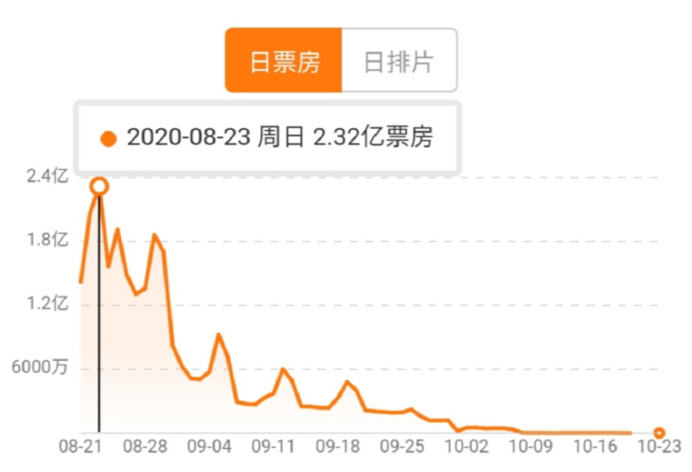 8月21日~10月23日《八佰》票房走势图