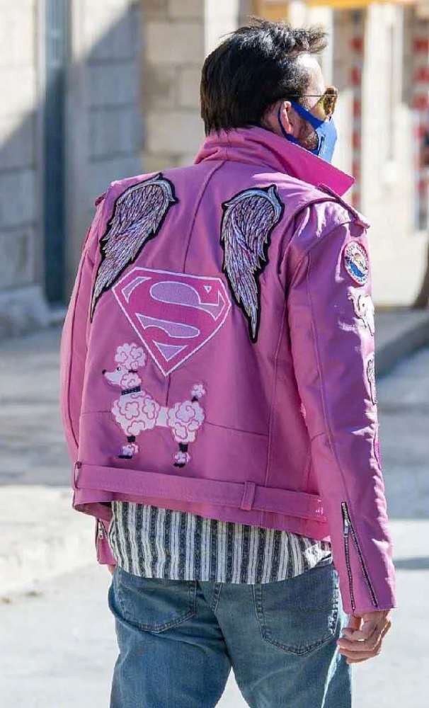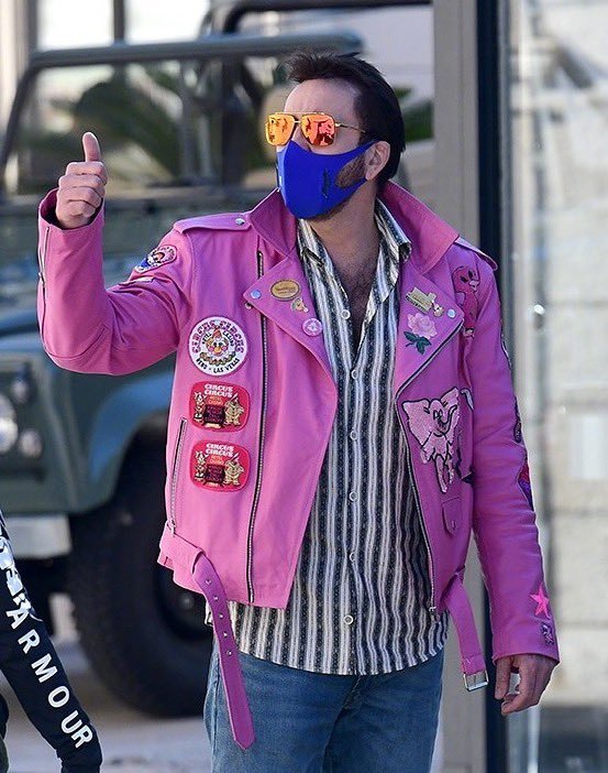 凯奇新片是此前作品套娃片,凯奇身穿粉色皮衣现身,十分新潮,内搭条纹衬衫,再加上蓝色牛仔裤,很是新潮,在大街上垂手可得就能成为焦点。另外,粉色皮衣后面还有超人及翅膀图案,使得网友纷纷评论超人。