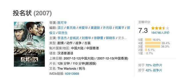 2007年,陈可辛导演的电影《投名状》上映,好评如潮。