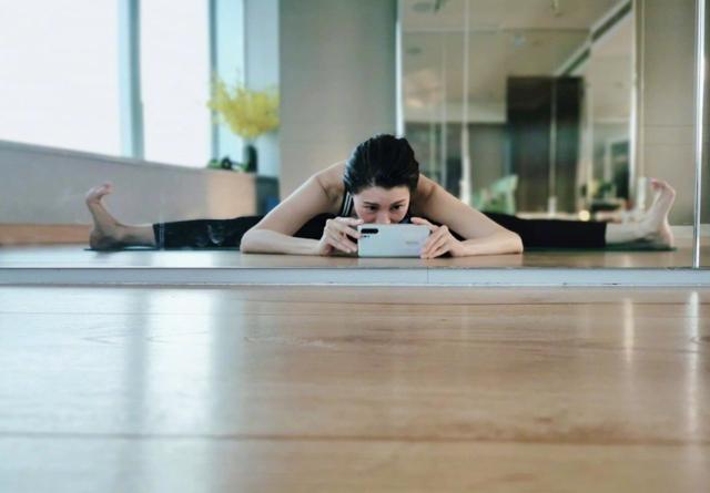 照片中的她正在豪宅中的健身房锻炼,她很客观的分析道,自己的柔软度还可以,可是力量和平衡还需要继续锻炼。