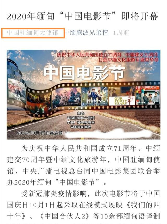 在报道中可以看到此次在缅甸举办的中国电影节是为了庆祝中华人民共和国成立71周年,中缅建交70周年而举办的,此次的举办方是由中国驻缅甸使馆、中心广播电视总台以及中国电影集团联合举办的,因而可知我国对2020年中国电影节的重视,而可见能够被选入的这几部电影都是由官方挑选出来,《诛仙》作为一部优秀的影视作品能够被选入不竭是对作品本身,还是参演的这部作品的演员,都是莫大的肯定。