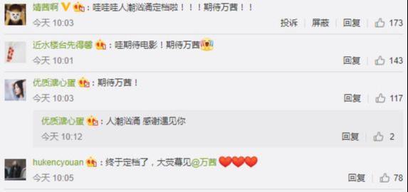 从《人潮汹涌》官微的评论区来看,虽然万茜的大部分粉丝都比较理智,表达了对万茜及电影的美好祝愿,但依然有个体粉丝提出了海报没有万茜这个问题,而且呼吁片方能把万茜加到海报上。