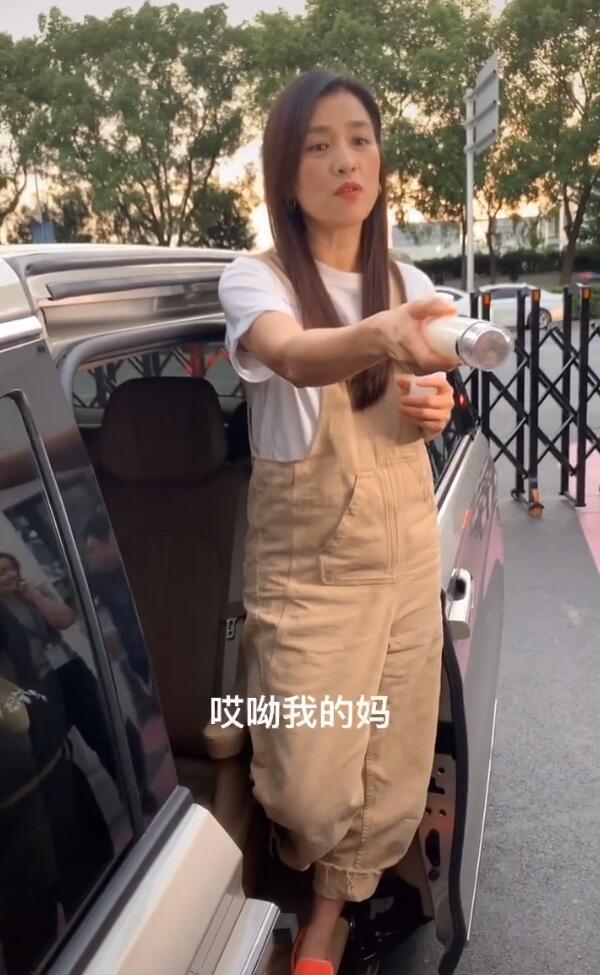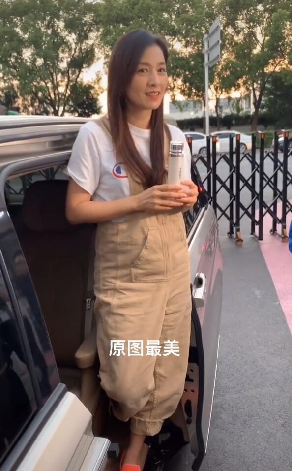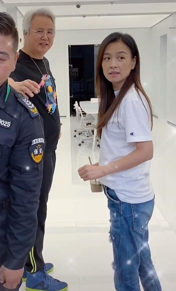张庭当天穿着白色衬衫配卡其色吊带裤,披散着长发,化着淡妆,站在车门处,对面有不少员工一向拍张庭。这已经是张庭公司的常态,他们家本来就是卖护肤品的,员工们拍张庭夫妇,还有一些其他的明星,并以此为噱头,让消费者购买他们家的产物。