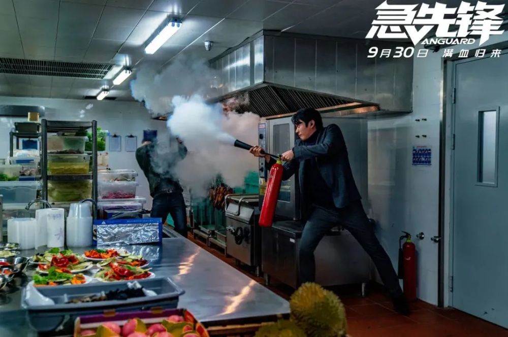 影片采用“急先锋”小组团队的形式,也从某种程度上卸下了一部分动作场面压在成龙大哥身上的包袱。我们看到在营救中,大哥站在天井围栏上撸起袖子准备跳,突然被告知还有楼梯可以走。他一拍手,OK,太好了!