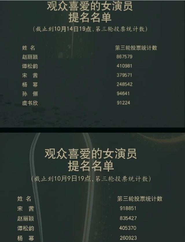 官方发布声明后,有粉丝认为这是针对宋茜的调整,目的就是把奖项内定在赵丽颖身上。可是从官方给出的数据来看,虽然赵丽颖的票数有所提升,可是票数上涨的也不止她一个,而且票数缩水的也不只是宋茜一个,说是针对实在还是有点牵强。