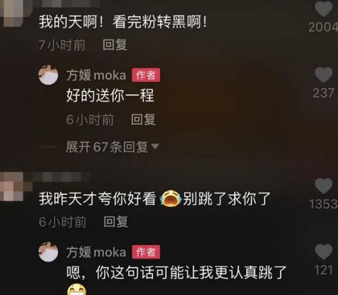 网民对方媛的反感情绪到达什么程度呢?只要是方媛一晒出新动态,就会有人开始传谣造谣污蔑方媛,就算方媛啥也不回应,只晒出跳舞视频,也要被吐槽是“机器人”水平。