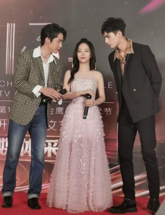 三人撒糖还不止这些,在接受采访时有一个环节是大家想一个口号送给金鹰节,没有想到三小我还真的认认真真在讨论了很久,梦回电视里三兄妹!记者要求三小我挨个说话,注意宋威龙说的话也非常感动,他说“尖尖先说吧”,这三兄妹真的太好磕了吧。
