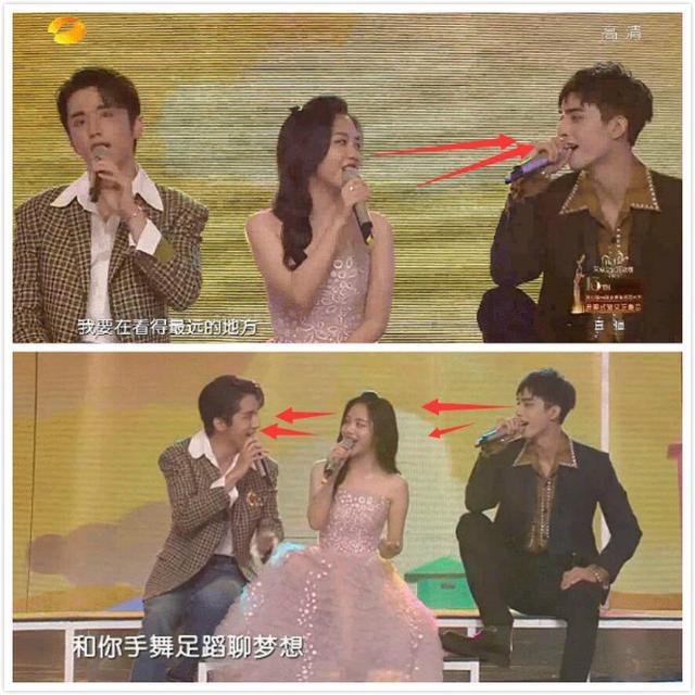 三兄妹一路下台表演了歌曲《看得最远的地方》,深情的演唱再加上三人的互动让人回想起《以家人之名》的温暖。现场谭松韵化身端水大师,两个哥哥都不辜负。一边和张新成对视后,马上又转过头来看看另外一边的宋威龙,大家甜甜的笑容简直要融化了。