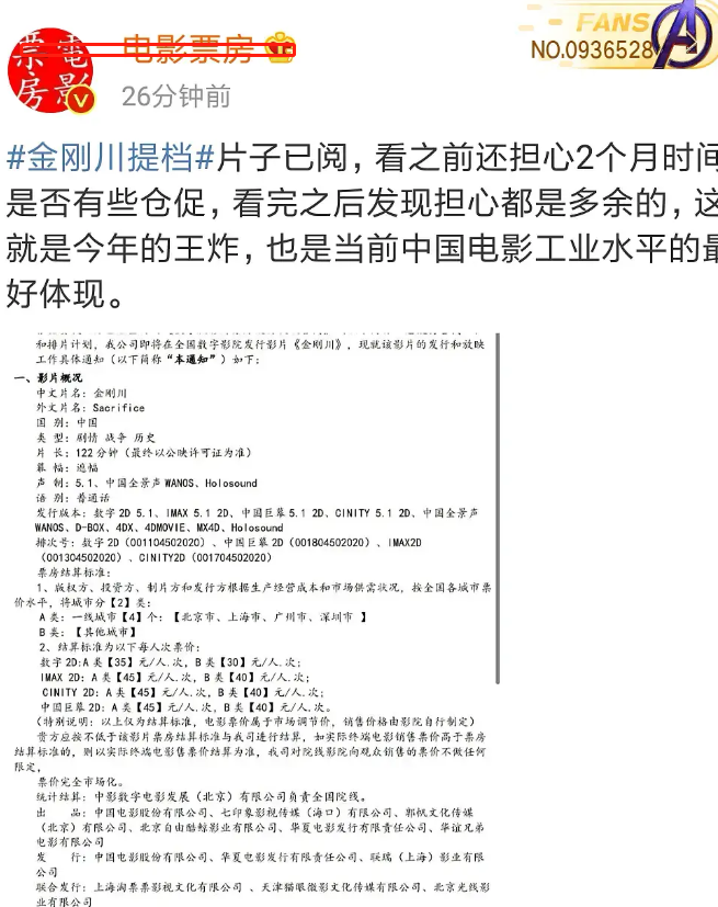 不少网友也翘首以盼:“我也看到了,好激动最近压力大需要来点猛的,我已经想象到在影厅里我的肾上腺素飙升了”““当前中国电影工业水平”,重点是这句吧?拿出基建狂魔的精神来拍电影”“期待一下”。
