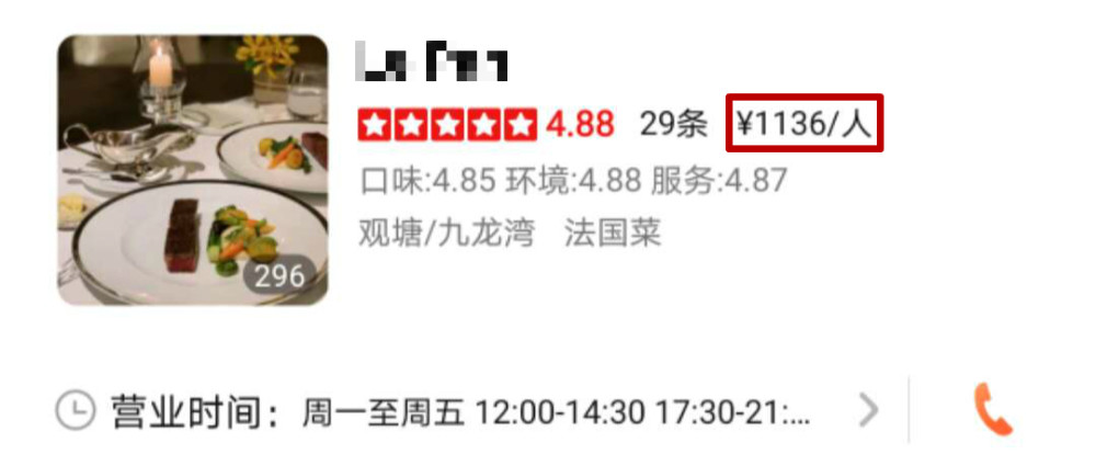 在某网站上,这家餐厅的人均消费在1100元以上,一顿下来价格不菲。