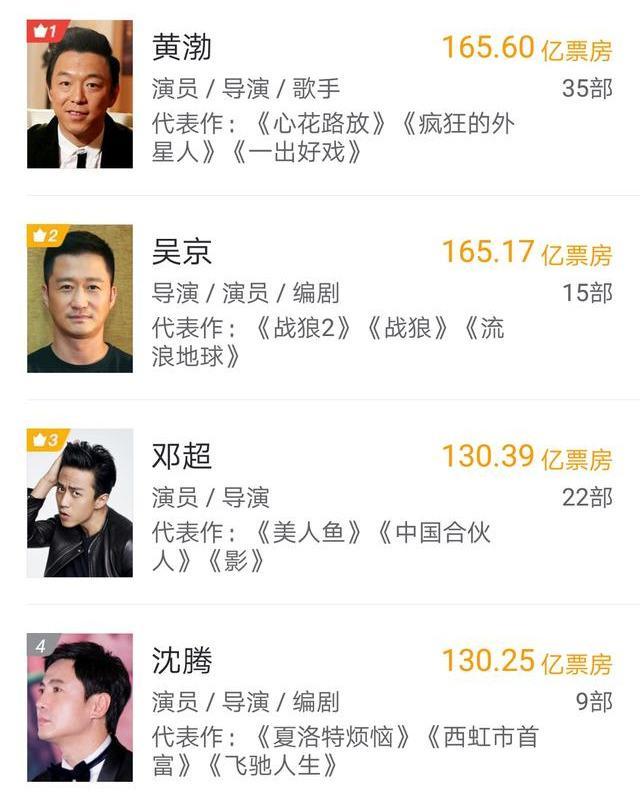 黄渤个人累计总票房也达到了惊人的165.6亿,成功超越吴京的165.17亿,成为内地新晋票房第一人!