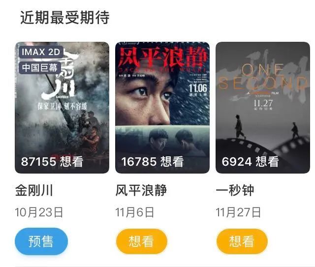 上映前不到一周,猫眼、淘票票、豆瓣电影是分别有8.4万、11.4万和3.5万人标记了“想看”,人数分别位列各平台同档期影片之首。