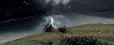 人们在飞溅的泥土和弥漫的硝烟中,仍然没有停止前进的脚步;