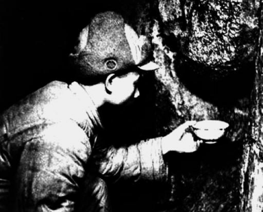 第一次巡逻,我们在山里走了三天两夜,这也是我长这么大第一次在野外露宿。宿营点在一块巨石之下,在这个天然形成的山洞里,松木噼里啪啦地燃烧着,锅里煮着几包方便面,环顾周围阴暗潮湿的环境,我一时有些难以适应。忽然,面条的香味缓缓飘入鼻中,我又回想起你在坑道里极度缺水的情况下,忍着干渴带头干嚼压缩饼干的情景,我默默对自己说:“坑道里那样恶劣的条件张忠发都挺过来了,我还走不上这座山头?”