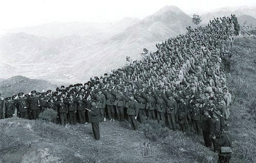 1958年志愿军撤离朝鲜前在英雄阵地上甘岭宣誓。