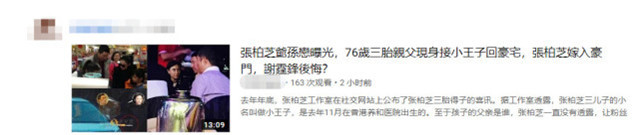 有网友猜测这一次张柏芝嫁的人是她三胎孩子的父亲,一名76岁的富豪。之前张柏芝被拍到与这位76岁富豪一同外出亲密游玩的照片,还被戏称为是“爷孙恋”,不少报道都写张柏芝结婚的对象是这个神秘的富豪,即将嫁入豪门做阔太太,甚至还报道称看到张柏芝嫁入豪门谢霆锋后悔了。