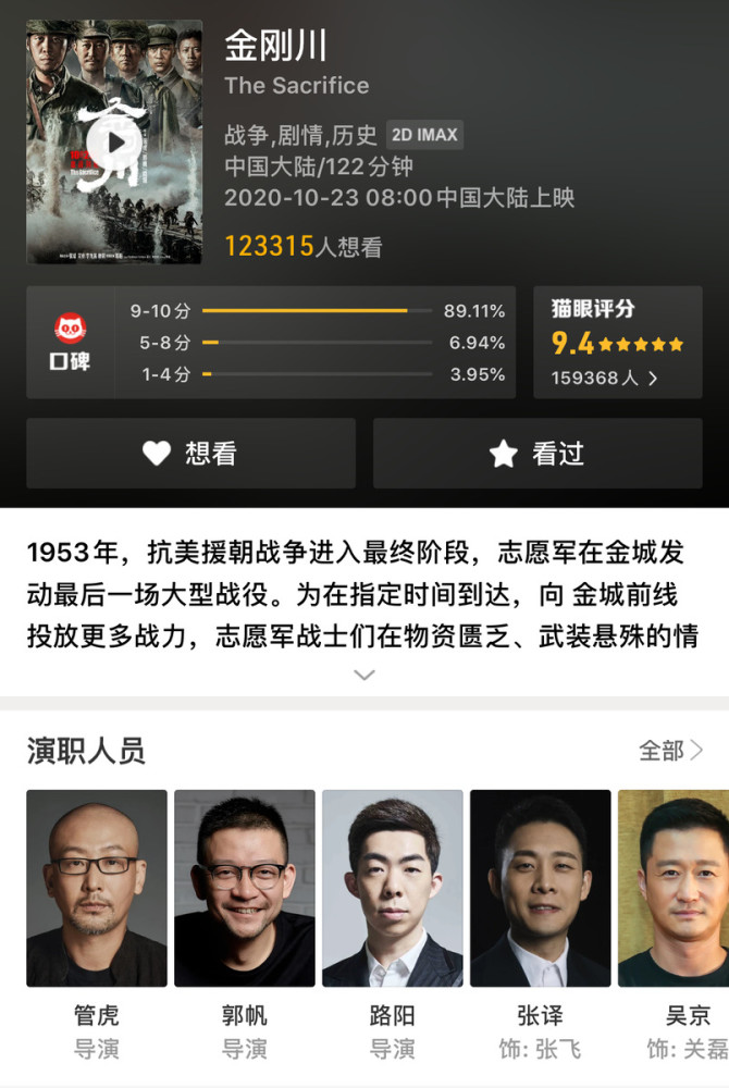 那么如今《金刚川》这部电影的网络评分始终是9.4分,却被网友质疑,不知道官方平台会做出何种解释呢?