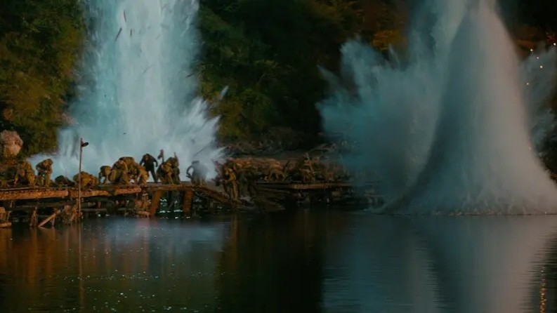 基于「美军不竭炸桥、工兵连抓紧时间抢修修桥」的脉络,《金刚川》的故事逐渐呈现在观众面前。有工兵连以修桥为己任的坚毅、炮兵和美军面对面硬刚的热血,也有志愿军们无惧炮火一心奔向前线的催泪…