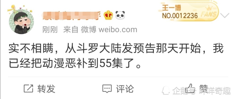 粉丝们也纷纷表达了对预告片的喜爱,期待正片的播出。下面有网友评论,“实不相瞒,从斗罗大陆发布预告那天开始,我已经把动漫恶补到55集了”,不消多说,这肯定是肖战的粉丝。