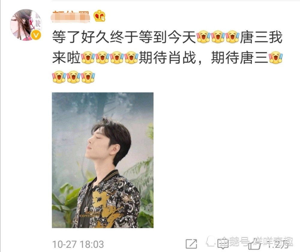 “终于等到你,期待肖战的唐三”。“等了好久终于等到今天,期待肖战,期待唐三。”