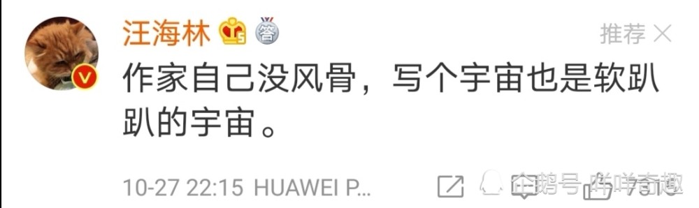汪海林称“作家自己没风骨,写个宇宙也是软趴趴的宇宙。”不光嘲讽斗罗大陆电视剧一般般,甚至原著也是“软趴趴”。