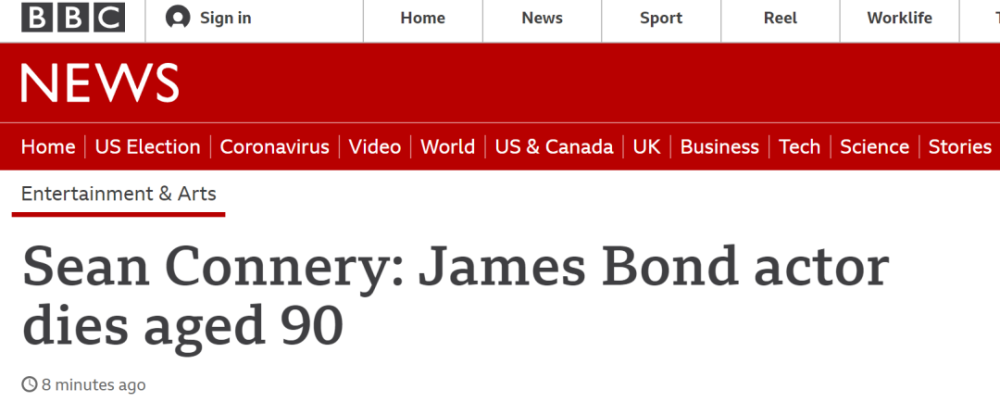 据环球网援引英国广播公司(BBC)报道,首任詹姆斯·邦德(007)的饰演者、演员肖恩·康纳利(Sean Connery)逝世,享年90岁。