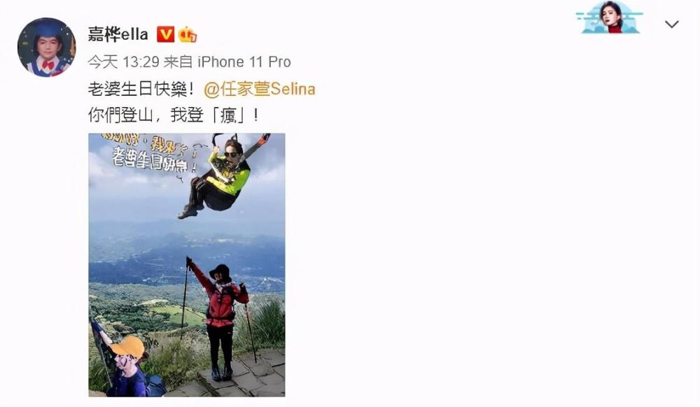 她还晒出了一张P过的三人合体照,真的是很有搞笑基因了。照片中Selina跟Hehe正在登山,Ella却在天空坐着缆车享用,估计两人看到这张照片会很想打她吧。