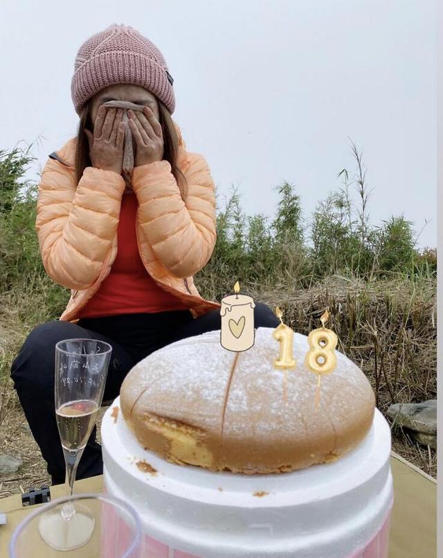 登上山顶的Selina看到大家为她准备的香槟,以及生日蛋糕还当场眼红,看她撇着嘴被感动哭的模样,真是很善良的姑娘。