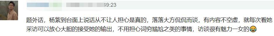 在整个讲述过程当中杨紫不会像有些明星一样眼神乱飘,而是恰当地与主持人和台下互动,网友看完也不由得夸她台面上说话从不让人担心,一向都很举止高雅。