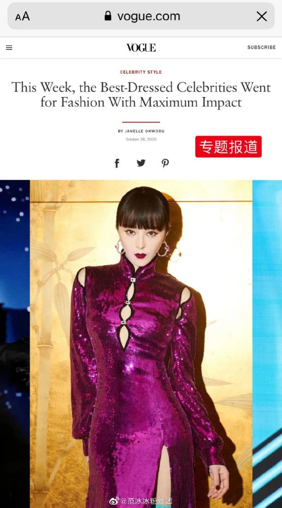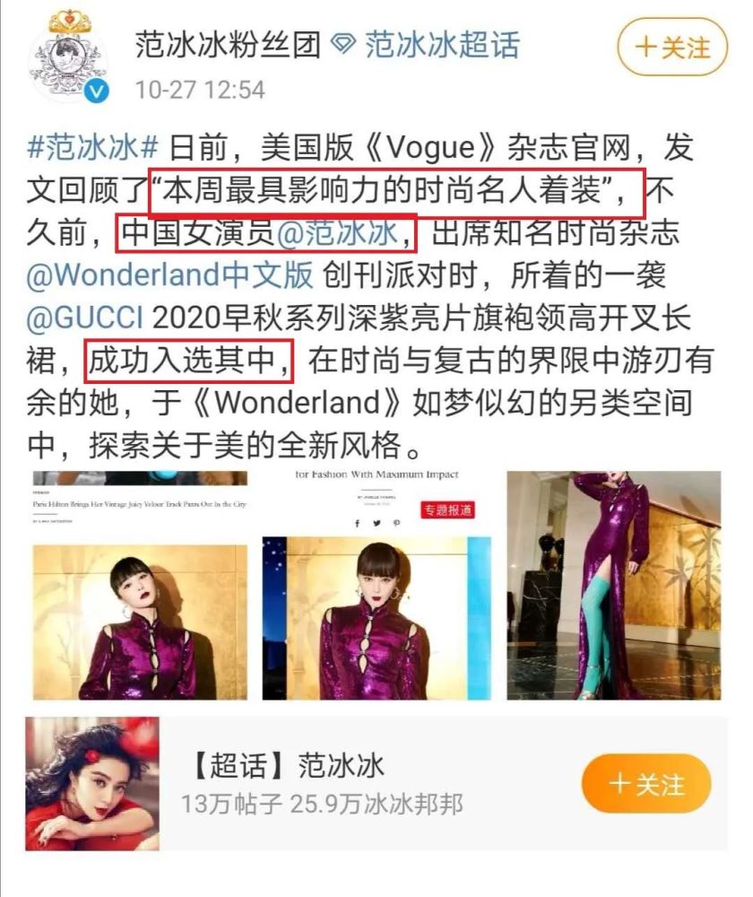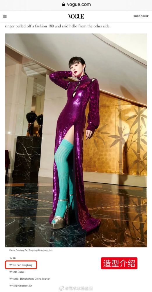其实很多人第一眼看到的时候觉得范冰冰这个造型比较失败,不明白范冰冰为何在时尚杂志创刊号派对上选择这样一套“红配绿”的造型。大家都知道坊间流传“红配绿赛狗屁”,大概意思是红色和绿色搭配起来,要多丑有多丑。但这一看就不是不明白时尚圈的风潮,所谓时尚不是跟风,并不是打稳妥牌。所有的时尚要敢为天下先,穿出自己的风格。所以果然,范冰冰的众多造型中,这套红紫色裙配绿袜子的造型出圈了!在大洋彼岸的美国版《Vogue》杂志“本周最具影响力的时尚名人着装”评选中,范冰冰这套装扮成功入选!
