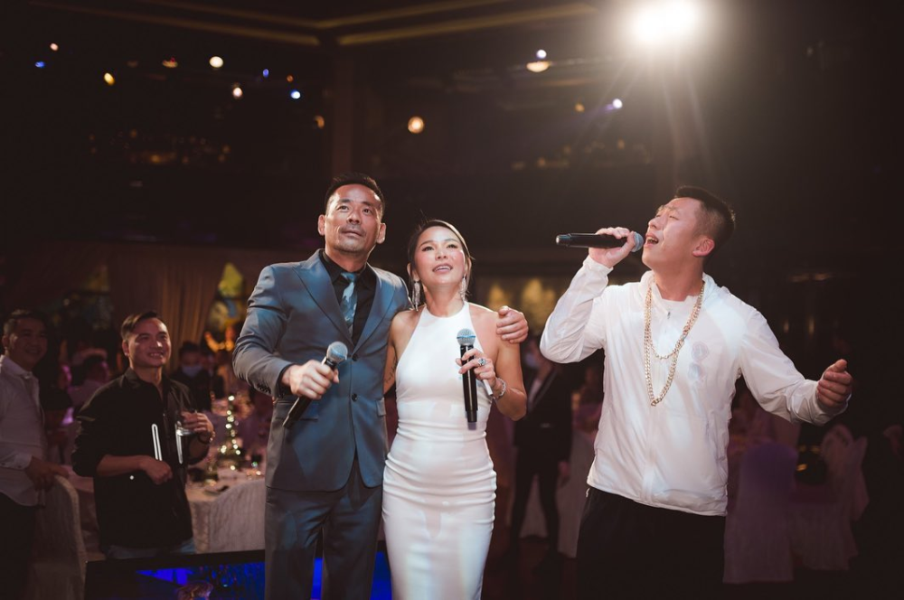 切蛋糕、吹蜡烛、许愿结束以后,洗米华夫妇俩继续秀恩爱,二人齐齐登台勾肩搂腰献唱,四目投向大银幕,甜蜜画面羡煞旁人。唱歌环节,洗米嫂不忘展示“鸽子蛋”大钻戒、钻石手腕、耳坠等奢侈珠宝,此刻舞台上她就是最闪亮的星!