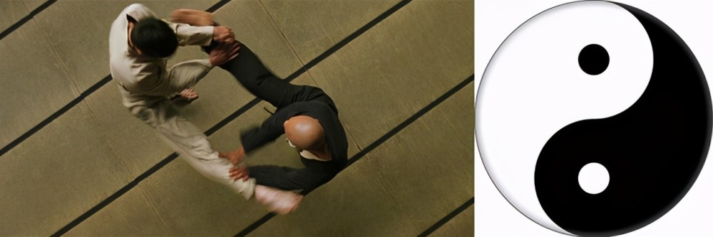3.《黑客帝国》中,尼奥和墨菲斯打斗的过程当中,衣服和头部正好组成了阴阳的标志。