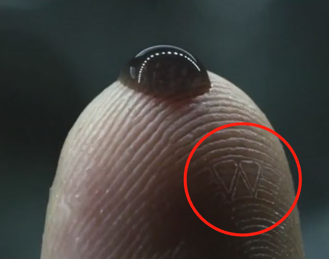 19.异形系列的前传《普罗米修斯》中,大卫手指的一个特写镜头,我们可以在他的指纹上看到Weyland公司的LOGO。