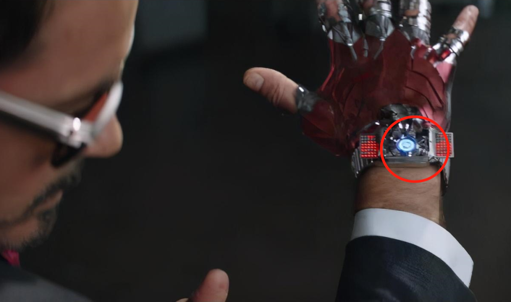 9.《美国队长:内战》中,我们可以在钢铁侠的手表变身过程当中,可以看到缩小不少的方舟反应堆,说明了托尼的装甲一向在进步迭代。