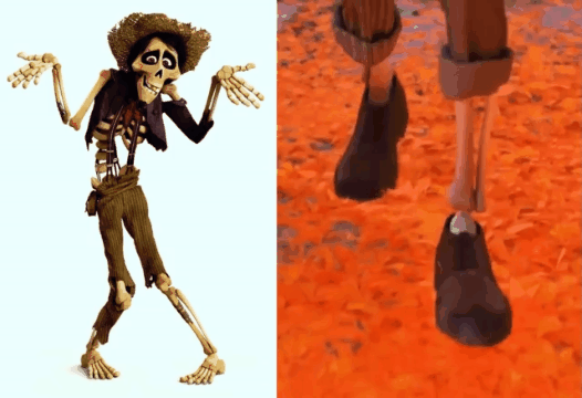 5.《寻梦环游记》中,埃克托一向都是光着脚穿着破烂的衣服,直到他最后与亲人团聚时,才有了干净的衣服,和家族标志性的鞋子~