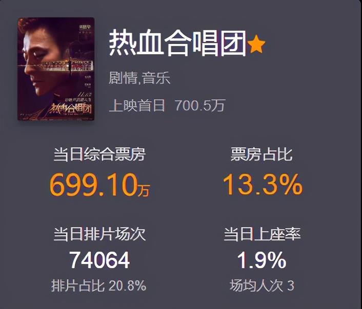 又到了周五新片开画日了,本周新片扎堆上映,既有国产新片,又有好莱坞大片,《热血合唱团》在众多新片中拔尖,首映票房拿到700万钱,位居单日票房亚军。