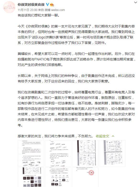 对此剧方也发布声明澄清:“始终尊重电竞行业,尊重所有电竞人及每个追求梦想的人”并放出logo设计过程表示只是意外。