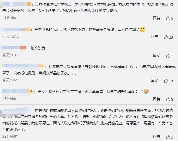 自从该剧发出预告以后,就被各种吐槽,尤其是来自电竞圈的粉丝,指责该剧不但抄袭、融梗,还照搬LPL电竞选手的真实经历。