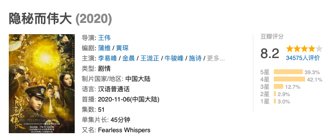 李易峰 的新剧《隐秘而伟大》,口碑真的很稳。播出没几天,就上了好几轮热搜,豆瓣评分也很快就出来了——8.2分。