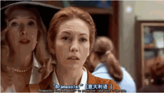 Frances和旅行团在闲逛的时候,先是碰到了一个戴着一个特别夸张的帽子吃着冰激凌的很奇怪的女人叫Katherine. 她又看到了一个房子的售卖信息,房子的名字,中文翻译成叫“思慕太阳”,我喜欢翻成叫向阳,又暗含了向日葵的意境。